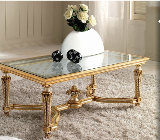 Coffee table from Italian producer Silvano Grifoni. The frame is made from solid wood. Countertop - durable clear glass. The frame is decorated with carved decoration. The model is made in classic style.