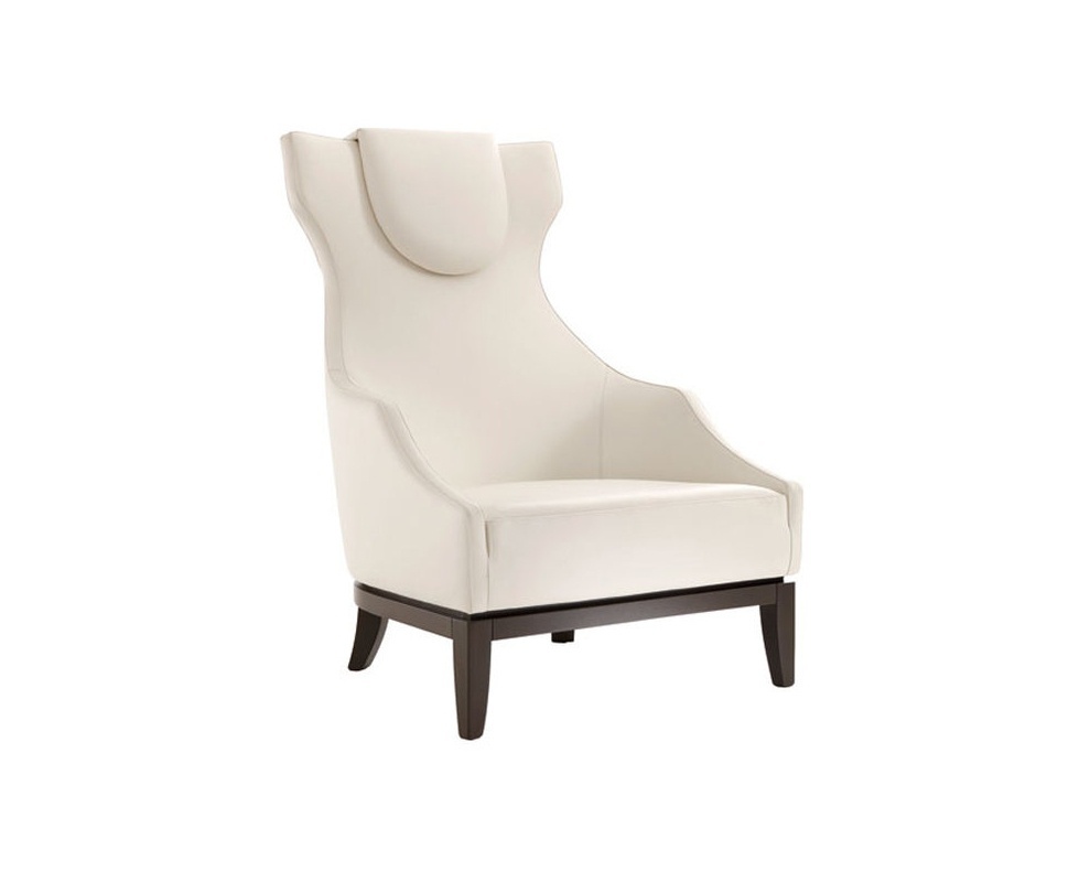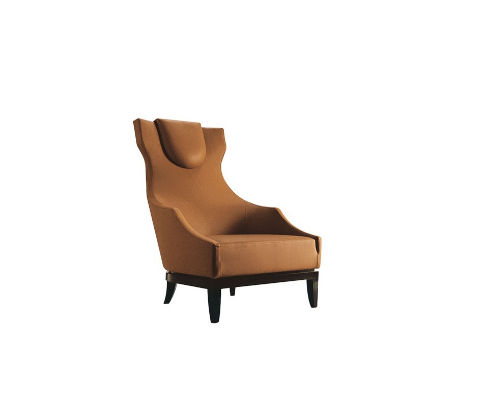 Maxim Berg?re chair from the Italian manufacturer Selva. The frame is made of solid beech. Low legs: front - direct, rear - legs-sabers. The chair is upholstered in leather from the company portfolio. The back cascades of low-pass armrests. Soft pillow for the head is removable. The model is made in art Deco style.