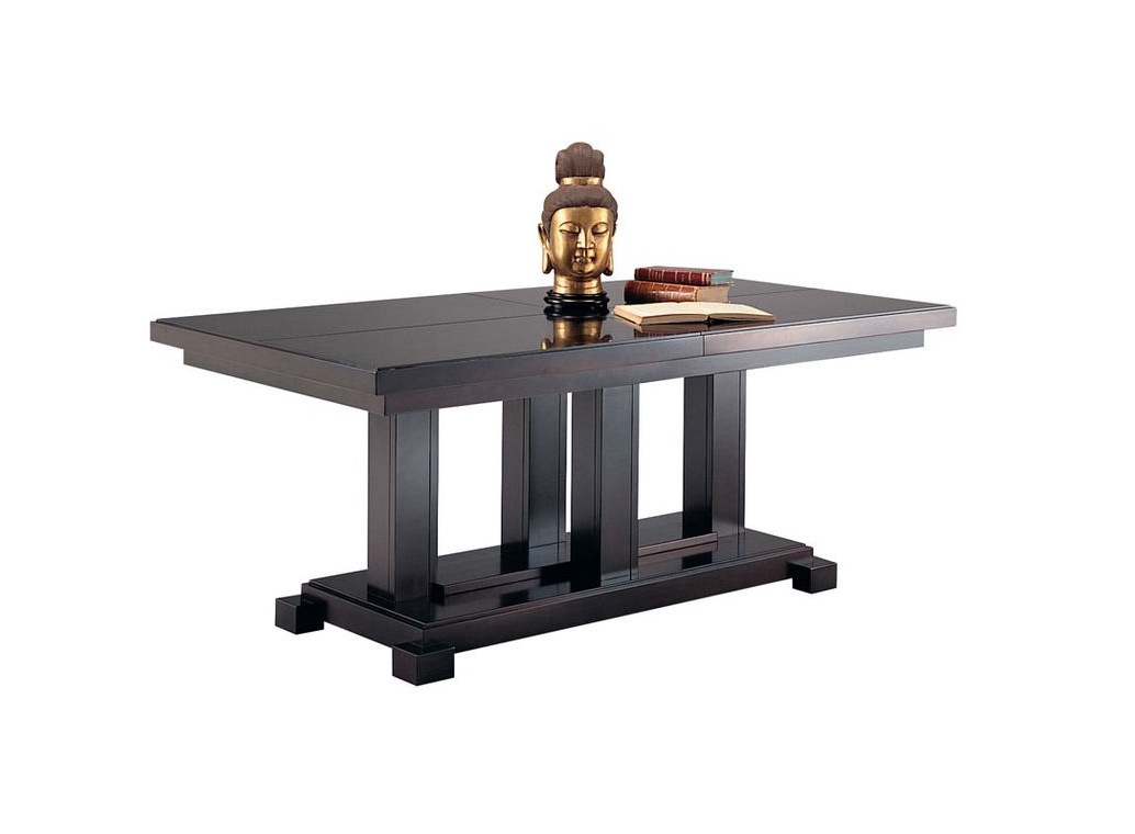 Rectangular table Downtown production Selva. The legs of the table is made from solid beech, the countertop is of solid alder finish veneer cherry. The legs constitute four pillars on a rectangular base. Extendible table with two inserts 50 cm the Model is made in art Deco style.
