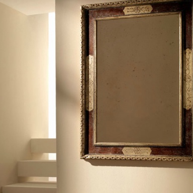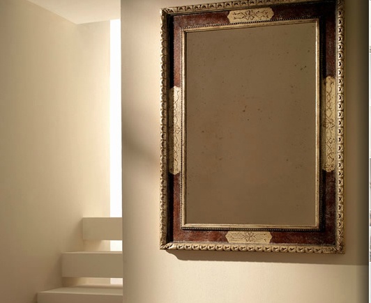 Rectangular mirror from the Italian producer Silvano Grifoni. Frame mirror made from solid wood. Frame decorated with carved work. Lasiecka the model is made in Golden color.