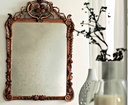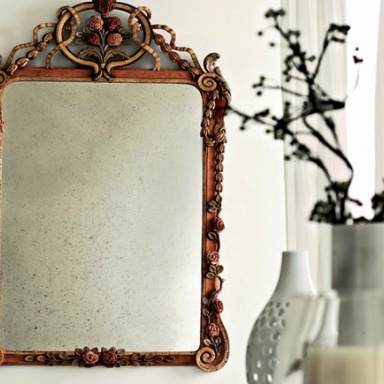 Rectangular mirror from the Italian producer Silvano Grifoni. The mirror frame is made of wood. Finish - antique lacquer and carved items with floral decor. The invite model will complement the classic interior.