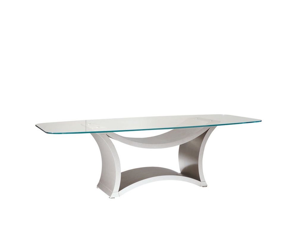 Aura dining table from the Italian manufacturer Selva. The tabletop glass. The base of the table is elegant design of cherry veneers, coated in silver. The model is made in modern style.