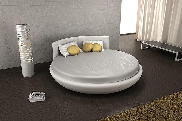 Round double bed with Cleo, Sm Divani from Italian manufacturer Sm Divani. The frame is made of wood. The model is made with high headboard. Leather upholstery from the assortment of the company. The bed is designed in modern style.