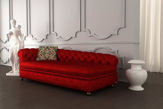 Couch Visconti, from the Italian manufacturer Sm Divani. The frame is made from solid wood. Upholstered in leather from the company portfolio. The couch is made with one armrest. Colors - red. The model will perfectly complement a modern interior.