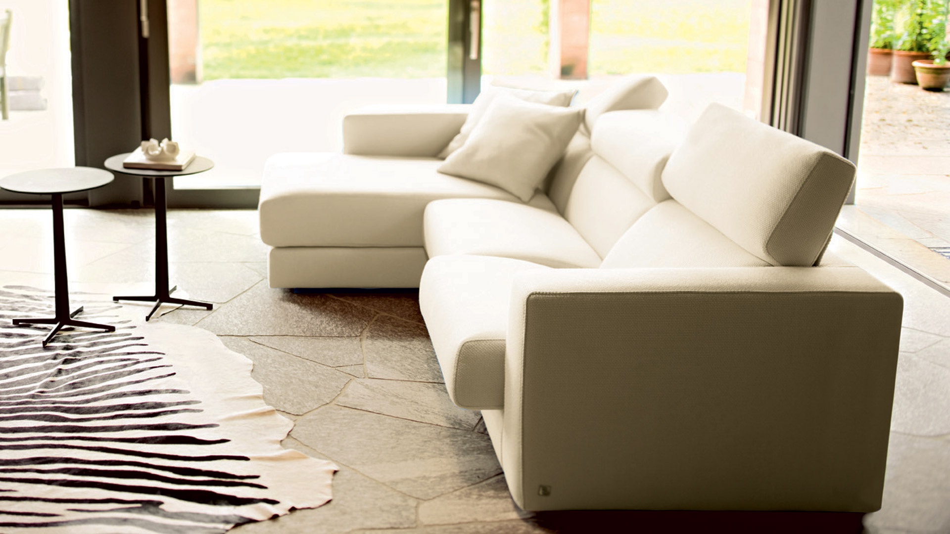 Ugo modular sofa from Italian manufacturer Busnelli. The frame is made of metal and plywood. Seat made of elastic belts, the filling of polyurethane foam of different density and 100% polyester. Legs are made of polypropylene black color. The upholstery is made of leather or textile. There is a relaxation mechanism. A great choice for living room in modern style. Colours in stock.