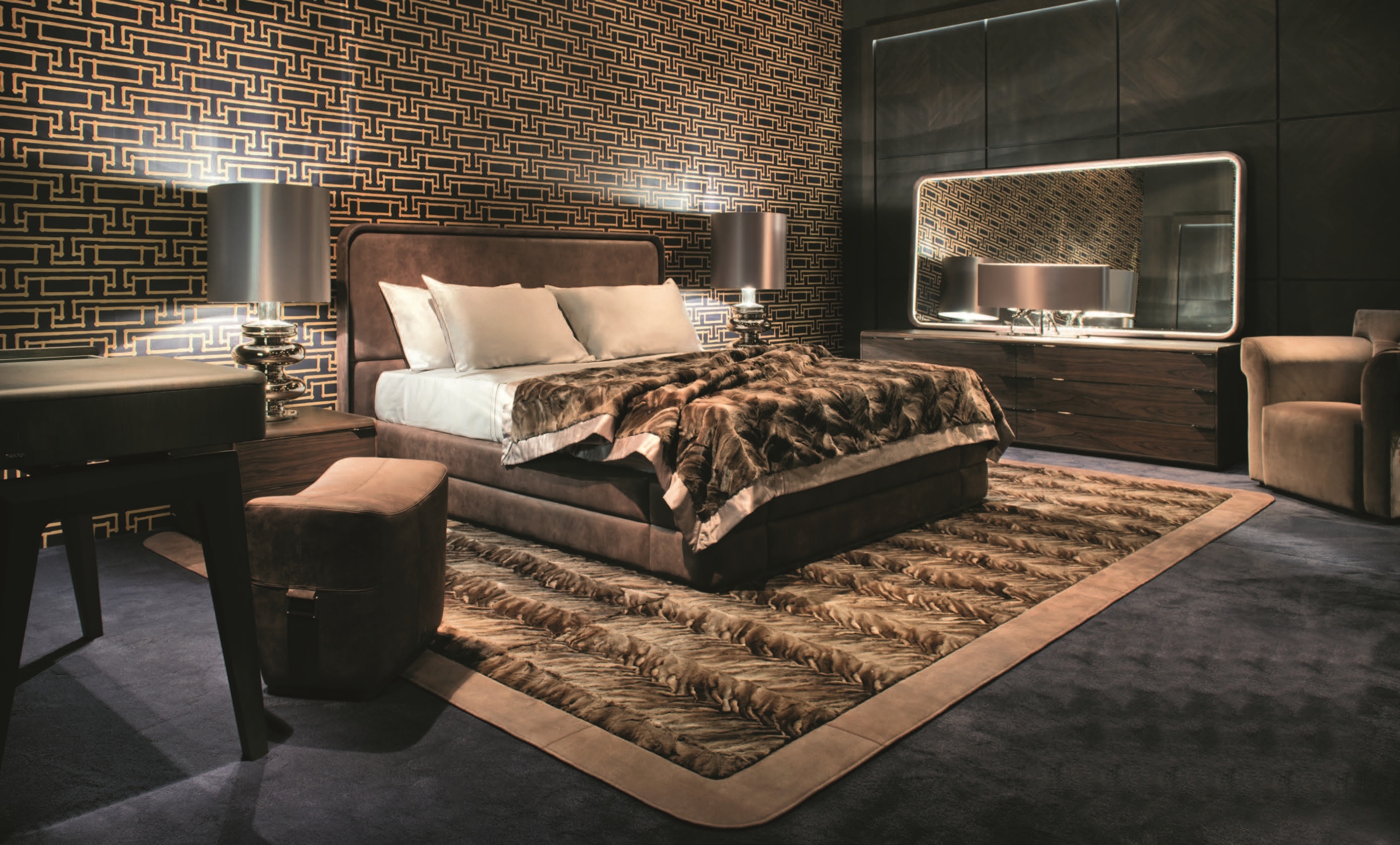 Double bed with upholstered headboard Markus from the Italian manufacturer Smania. The model is made in modern style. The frame is made of wood. As the upholstery used is genuine leather. Colours in stock.