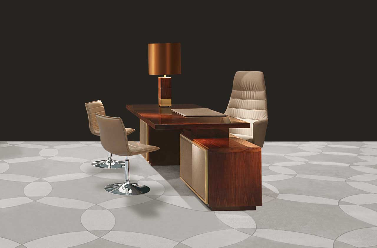 Headsets for the office from the Italian manufacturer Smania. Includes a Desk, two chairs, armchair. Frames models made from solid wood. Finishing is made with glossy varnish. Chairs on metal base. Upholstered in leather from the company portfolio.