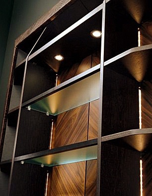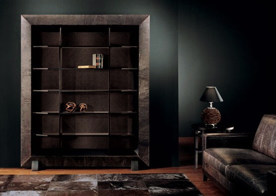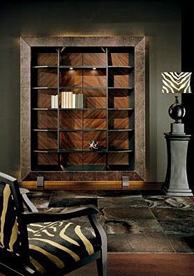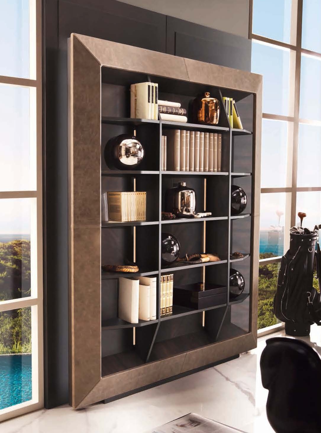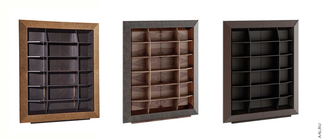Bookcase Bispy Mood from the Italian manufacturer Smania. The frame is made from solid wood. Cabinet with five shelves in the frame, trimmed in leather. The Cabinet has an interesting structure shelves. Colors in the catalog. The model is made in modern style.