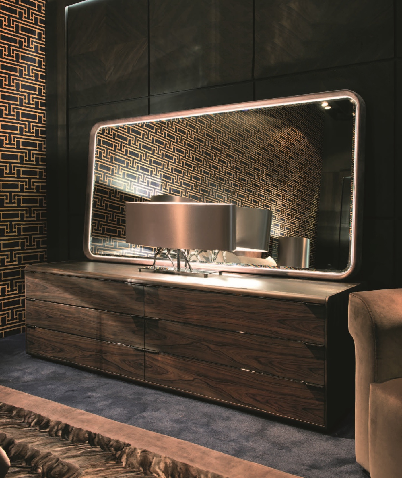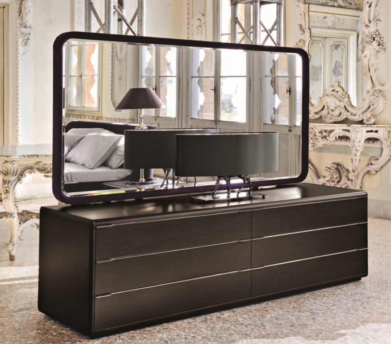 Continental 215 dresser from the Italian manufacturer Smania. The model is made in modern style. Dresser with six drawers with metal parts. The body is made of wood. The drawers can be supplemented by a mirror.
