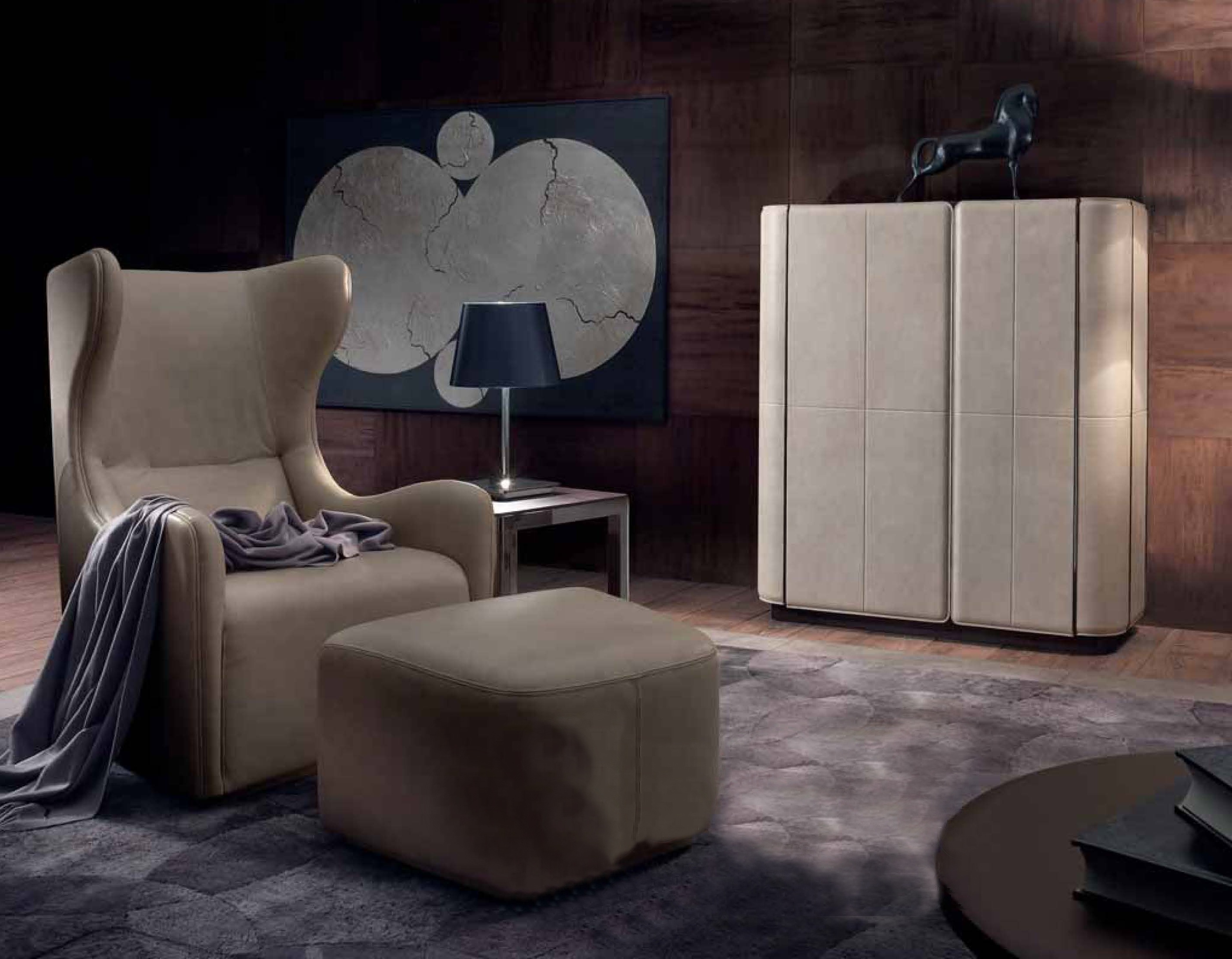 Sveva armchair, from the Italian manufacturer Smania. The frame is made of wood. Upholstered in leather from the company portfolio. The chair is made with a high back. The model is made in modern style.
