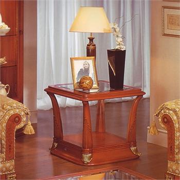 California mesita small table from the Italian manufacturer Vicente Zaragoza. The frame is made from solid maple and beech surface treated with glossy varnish from the range of the campaign. The top glass. The handmade decor. Carved details, finished off in gold leaf. Model pridivannogo for the living room in a classic style. Product color natural wood.