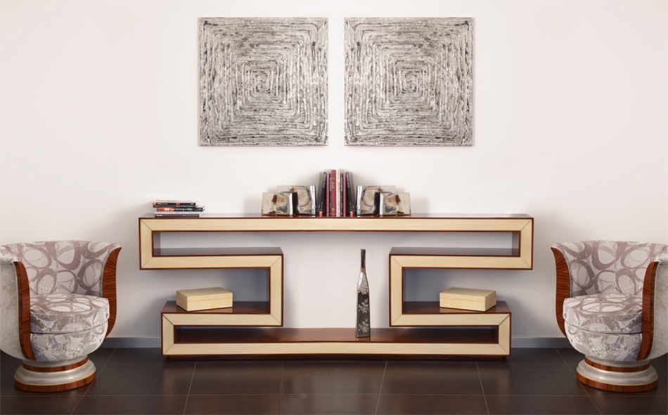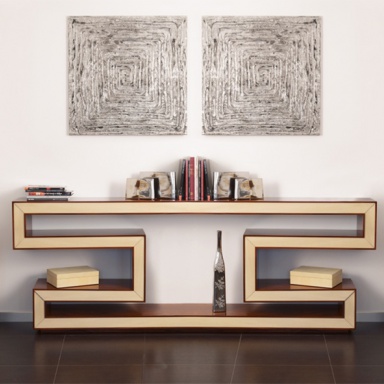 The console, from the Italian manufacturer CL Italia. The frame is made from solid wood. Finishing varnish from the company portfolio. Colors - brown and ivory. The model has an interesting case design. The console will perfectly complement the interior living room.