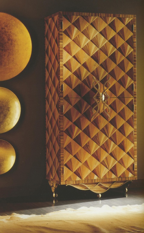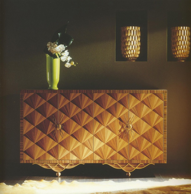 Canteen, from Italian manufacturer Cl Italia. The frame is made of wood. Finish - lacquer and carved decor. Colors - brown. The sideboard rests on legs in the form of spheres, Golden in color. Fittings - metal. The style is art Deco.