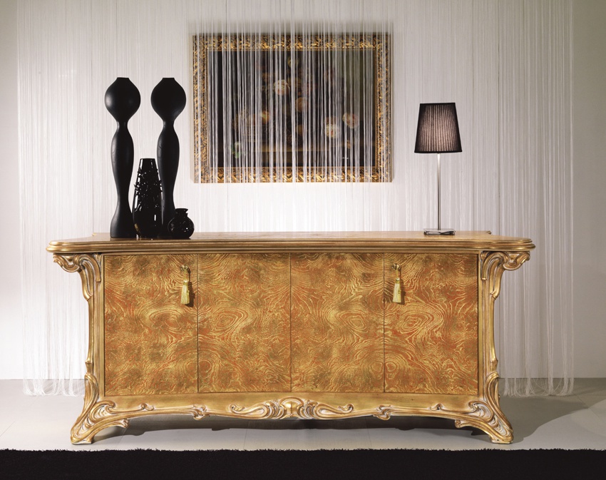 Canteen, from Italian manufacturer Cl Italia. The frame is made from solid wood. Finishing varnish from the company portfolio. Colors - brown. The facade is decorated with carvings and inlays.
