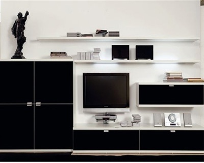 Modular system Tameta from the German manufacturer Huelsta. Includes a number of cabinets, shelves and partitions for storage. The frame is made from solid wood. The glossy lacquer finish is offered from the company portfolio. Shutters offers wooden or glass. Accessories metal. The design complements the built-in backlight.