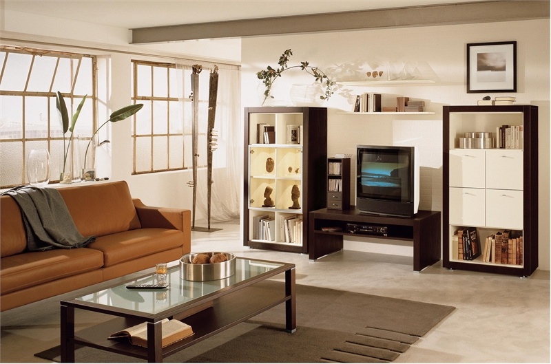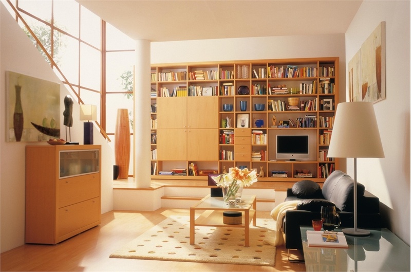 Modular system Xelo tv unit from German manufacturer Hulsta. Consists of a series of open shelves, drawers and sections for storage. Material - solid wood. The surface may be treated with a glossy lacquer or veneer. Sash blind or glazed. Provides design and space for TV. The model is made in a modern style.
