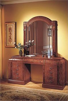 Viena vanity from Italian manufacturer Vicente Zaragoza. The frame is made from solid maple, finish spanam tree. Fittings - metal. Decoration - marquetry/inlay. Details accented with gold leaf. All stages of the finishing is done by hand. Pretty model for bedroom in classical style. Product color natural wood.
