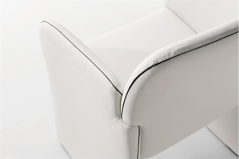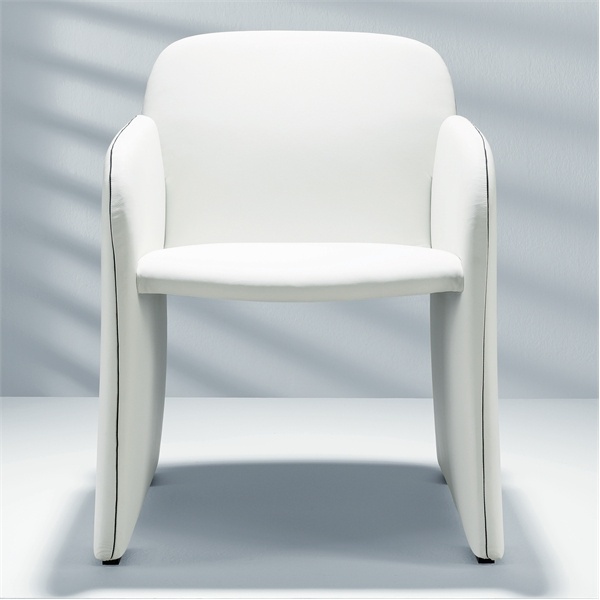 The chair from the German manufacturer Hulsta. Model with a rounded back and armrests. The frame is completely hidden. The upholstery is available in textile or leather to choose from a range of firms. Decoration is a decorative box dark or light color. A chair made in a contemporary style.