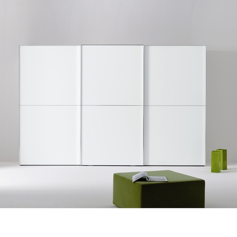 Rack Up Date Look from the Italian manufacturer Verardo. The facades are made of glass/aluminum. The surface is treated with lacquer. Tricuspid wardrobe with sliding doors is suitable for bedrooms in modern style. Product color white.