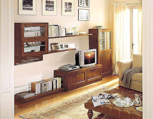 Modular storage system from Italian manufacturer Zilio. The frame is made from solid wood, the surface is treated with varnish from the range of the campaign. Sash - blind/glass. Model for books and TV. The perfect choice for a living room in classic style. The color of natural wood products.
