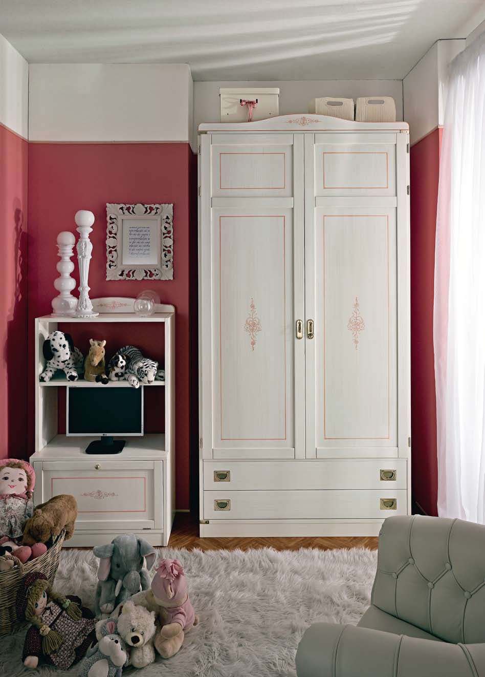 Set for children by Italian manufacturer La Vecchia Marina. The model is made in classic style. Includes wardrobe, bed, bedside tables and a computer Desk. The frame is made from solid wood. The color of this headset in white, it is possible to select in the catalog of the manufacturer.