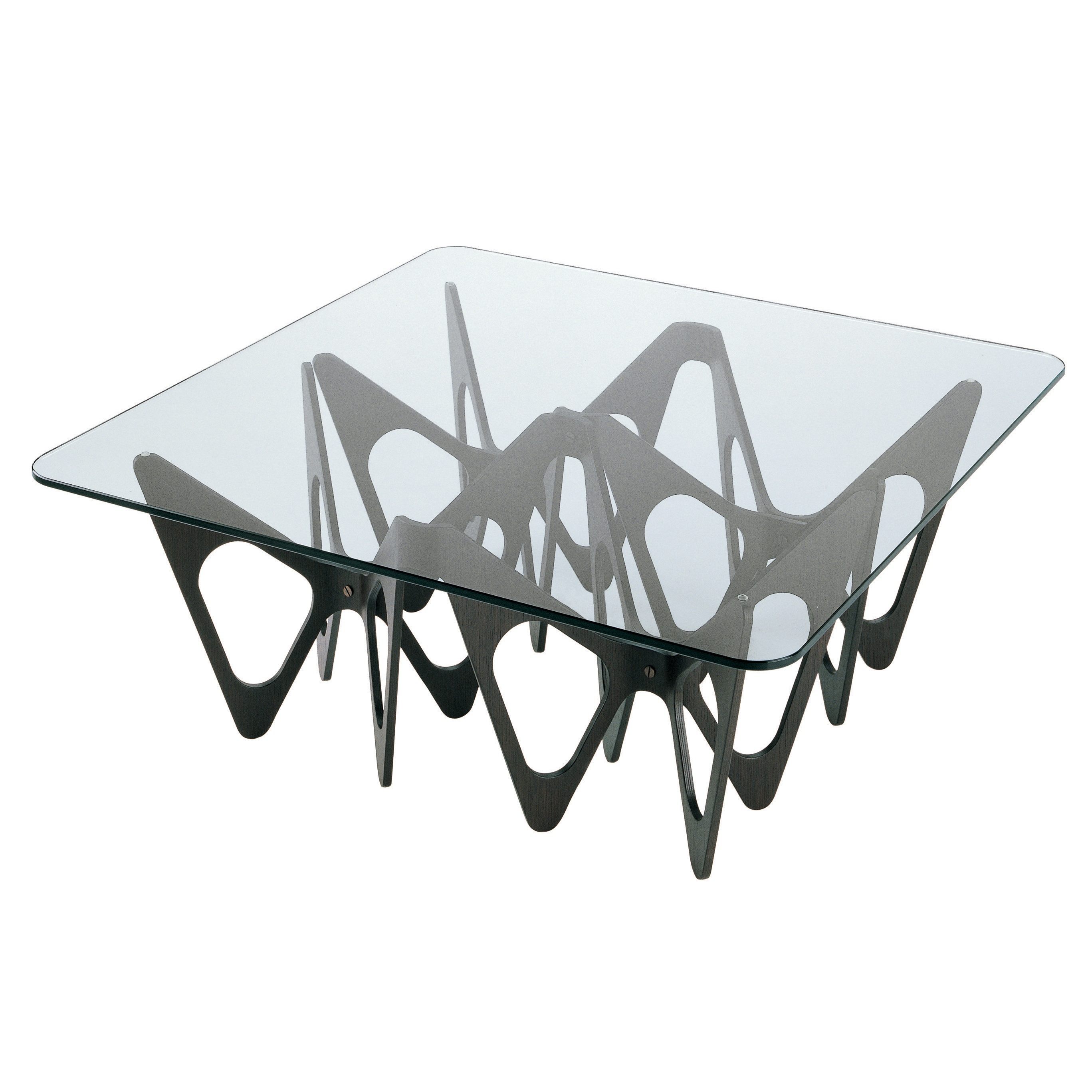 Butterfly coffee table from Italian manufacturer Zanotta. The base is made from plywood, finish spanam tree. The top tempered glass. The shape of the legs resembles the wings of butterflies. The model will decorate the interior in a modern style. Colors: transparent, black.