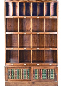 The rack is from the Italian manufacturer Camerin. The frame is made from solid mahogany, casement - glass. Model for books with open sections and sliding doors. A lovely choice for the interior in colonial style. Product color natural wood.