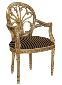 A chair from the Italian manufacturer Camerin. The frame is made from solid wood. The seat upholstery - polyurethane foam padding - the fabric is from a range of campaigns. Finish - carved/varnish. Model with round back and armrests. A great choice for bedrooms in classic style. Colours in stock.