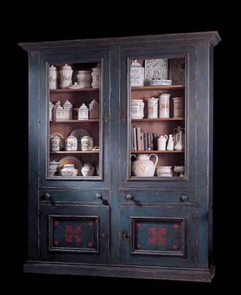 Bookcase Fiorenza from the Italian manufacturer Tiemme. The model is made with two doors and two drawers, lockable. This model is made in a vintage style. Colours in stock.