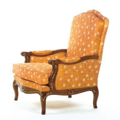 Chair with high back Italian manufacturer Isaaco Agostoni. The frame is made of wood. The model is decorated with sculpted elements of the legs and low armrests. Upholstery made of high-quality textile orange. Made in the classic style.