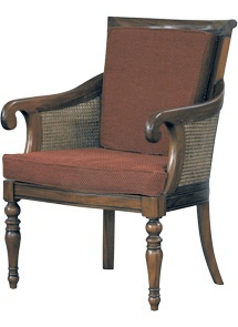 A chair from the Italian manufacturer Camerin. The frame is made from solid wood, filler - foam, upholstery - cloth from a range of campaigns. The backrest and the seat removable. The model is designed for the living room in a colonial style. Colors: natural wood color, brown.