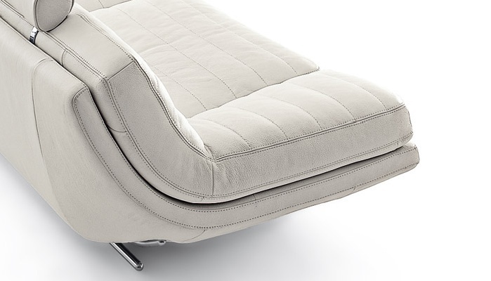 A double sofa from Italian manufacturer Contempo. Legs are made from chromed metal. Frame fully covered in leather or textiles. The color of this model is white. The seat cushion is removable. The filler is not deformable polyurethane foam. Additional comfort is provided by convenient headboard and decorative pillows.