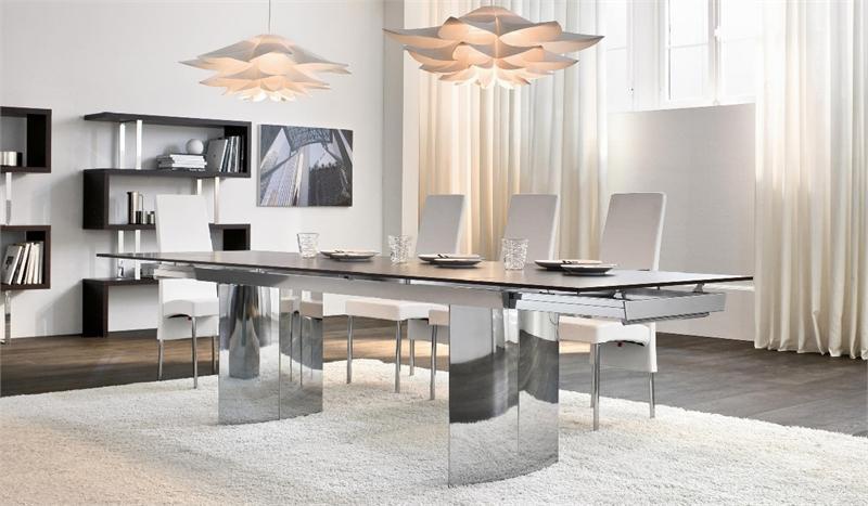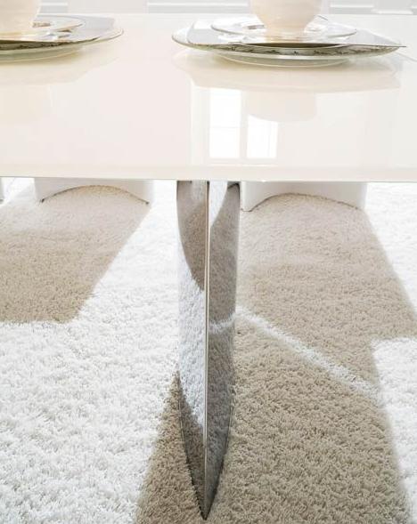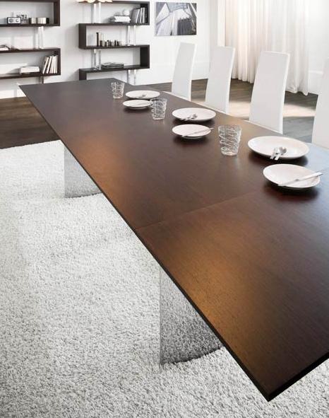 Dining table from the Italian manufacturer Tonin Casa. Model on high metal legs. Table top in rectangular shape is made of wood or glass. The finish is offered in white, black or wenge. There are several variants of the top. The table is manufactured in contemporary style.