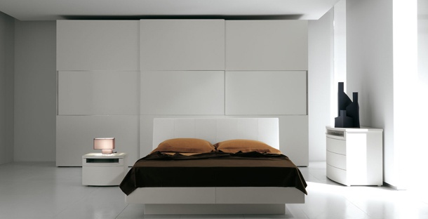 Headsets for bedrooms from Italian manufacturer Verardo. Set includes double bed, bedside tables, chest of drawers and wardrobe. Material - solid wood. The surface is covered with a glossy lacquer white. The model is made in a modern style.