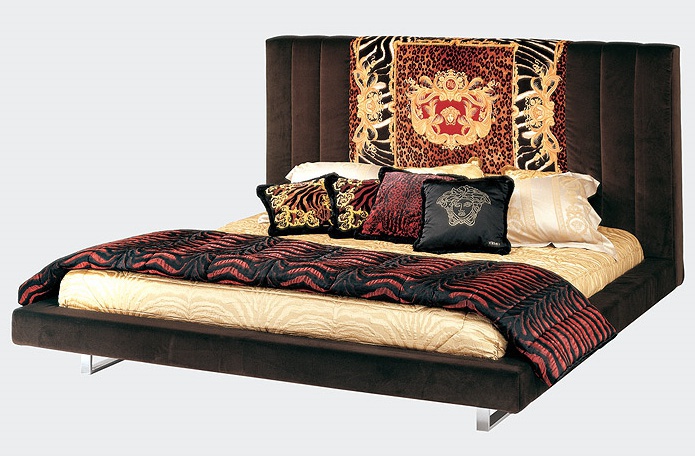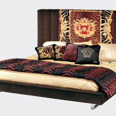 Frame made of solid wood. The legs are metal. High headboard covered with textiles. Available wide selection of colors. The model is made in a modern style. Is characterized by durability and elegance.