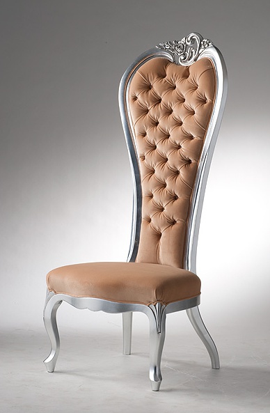 Chair Queen Privilege from the Italian producer of Versace Home. Model with a high curved backrest. Legs and frame made of solid wood. The finish offers a glossy varnish. Fabric upholstery with decorative stitch-Capito. The decoration is hand carved. Distinguished elegance and elegance.