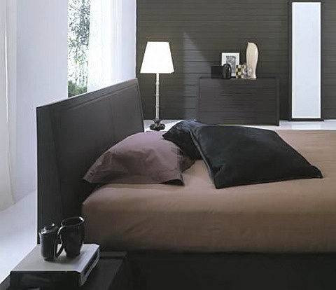 Set for Dream bedrooms from Italian manufacturer Voltan. Set includes double bed, two bedside tables and a chest of drawers. Material - solid wood. The finish offers high gloss lacquered black. The headboard is covered with textiles. Headsets are made in a modern style.