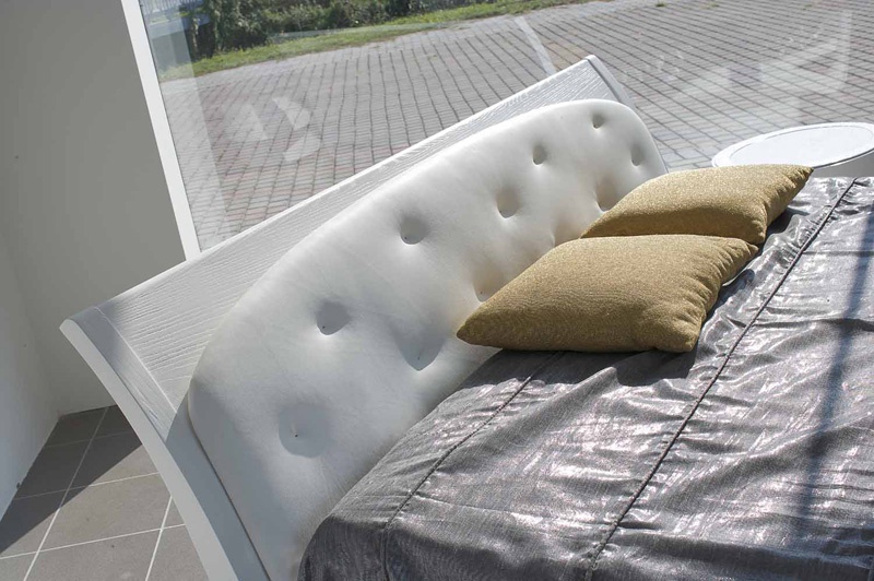 Double bed Eros from the Italian manufacturer Voltan. Frame made of solid wood. The finish offers a glossy white lacquer. Upholstery textile from the collection company. The color of this model is white. Headboard adorned with decorative buttons. Different bed comfort and elegance.
