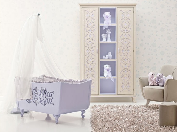 Lullaby bed from Italian manufacturer Halley, collection Bebe. Are used in finishing of fabric (upholstery and drapery) and eco-friendly water-based paints. Options "for girls" and boys", in a variety of colors.