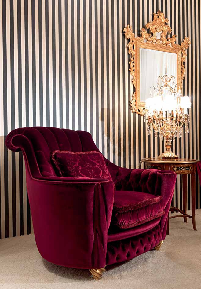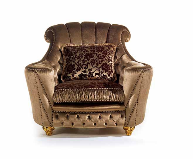 The Nuvola armchair armchair from Italian manufacturer Zanaboni. The frame is completely hidden. Low legs are made of solid wood. Proposed finish varnish Golden brown. Upholstery textile. There are several color options. Model of decorative decorated with stitch-Capito. The design complements the soft pillow of similar design.