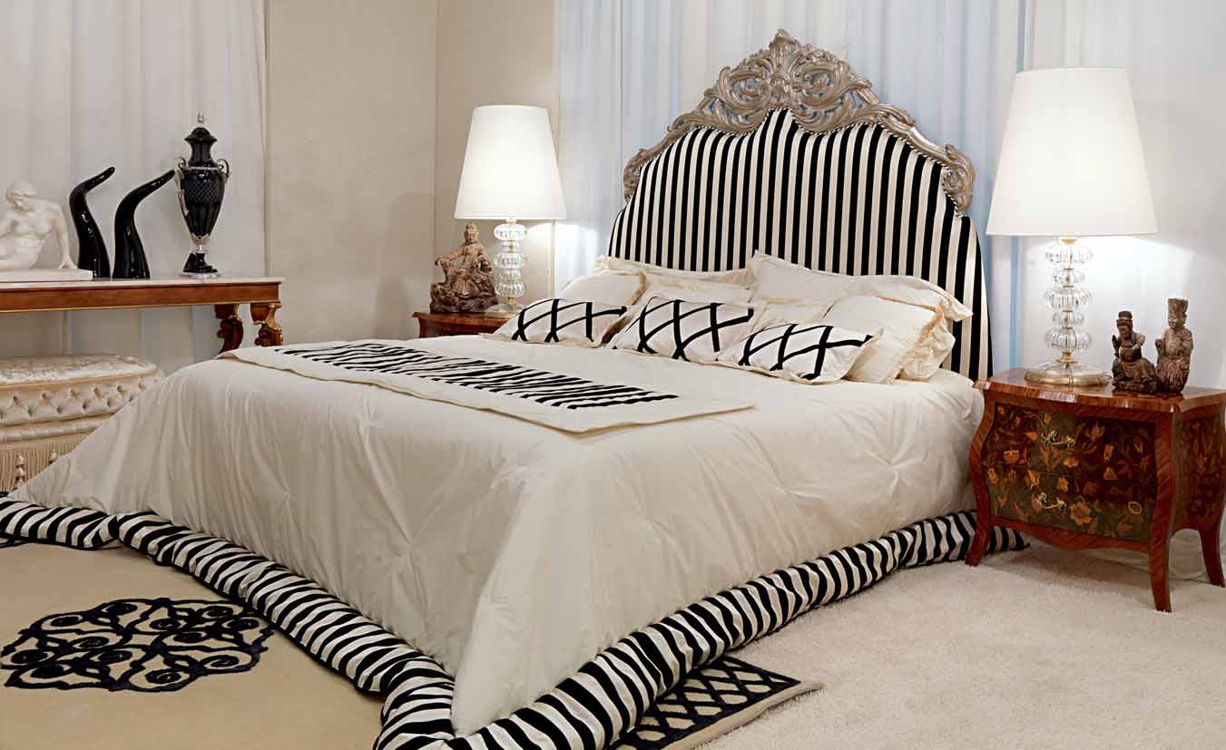 Double bed Canova from the Italian manufacturer Zanaboni. The frame is made from solid wood. High headboard covered with textiles. There are several color options. Decoration is the decorative carving handmade. The model is made in classic style.