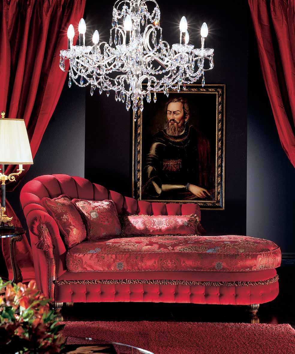 Natalie couch from the Italian manufacturer Zanaboni. The model with one armrest. The frame and legs of solid wood. The finish offers a glossy varnish. The upholstery is leather or textile. The ornament serves as a decorative stitch-Capito and pillows of different shapes. The couch is made in a classic style.