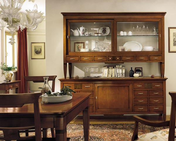 Showcase from the Italian manufacturer Zilio. Includes drawers and closed shelves. The frame and legs are made of solid wood. Finish option to choose from a collection company. Shutters and shelves made of transparent glass. Pen boxes made of metal. The model is made in classic style. Perfectly fits and complements any interior.