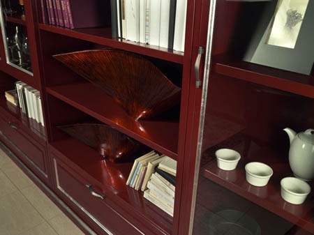 The bookcase from the Italian manufacturer Zilio. The model includes open and closed shelves and drawers for storage. Material - solid wood. Offers a glossy finish or a matte varnish. Sash of clear glass. Accessories metal. Custom closet in classic style.