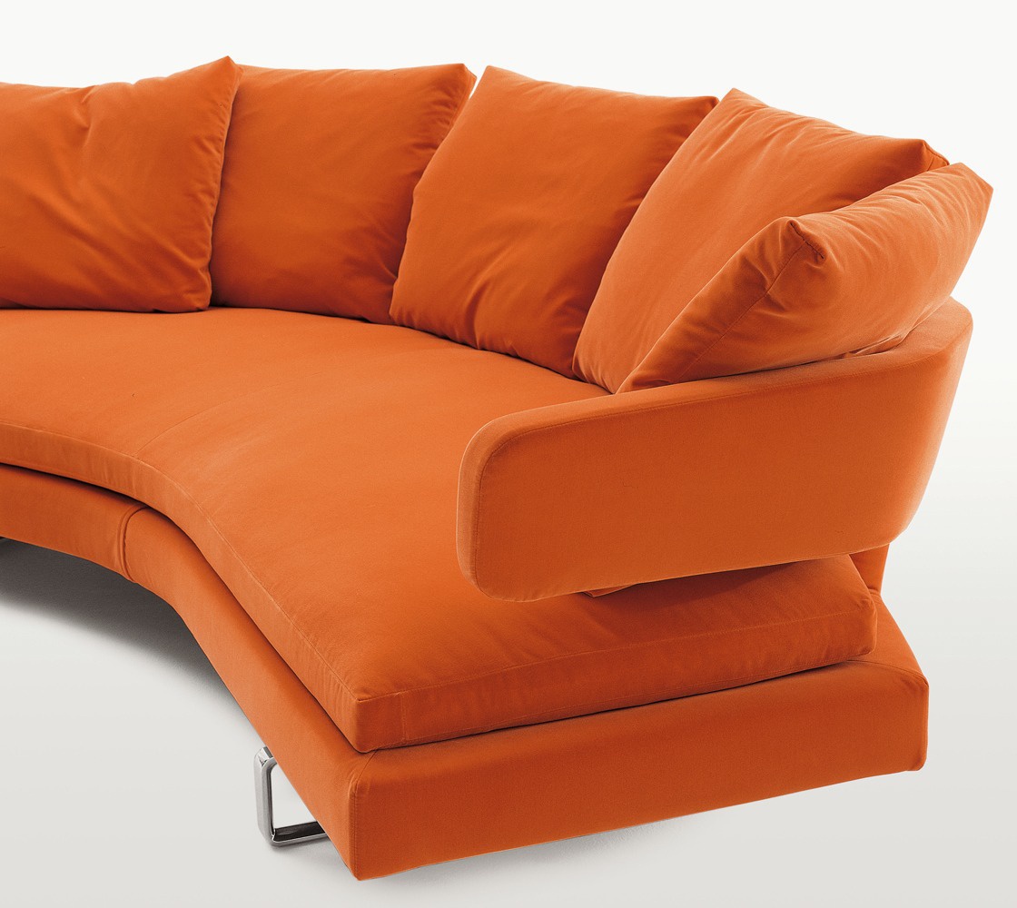 Arne sofa from Italian manufacturer B&B Italia. The frame is made of steel, filler - foam, upholstery - leather or fabric from the company portfolio. Model double and triple, semicircular. A chic choice for the living room in a modern style. The design of complementary decorative pillows. Colours in stock.