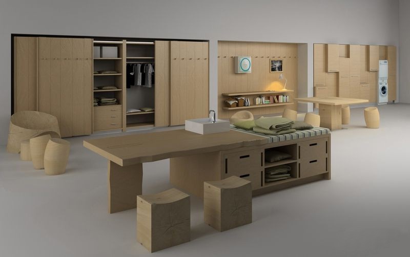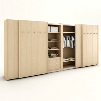 Wardrobe Wardrobe Hangar from the Italian manufacturer Riva 1920. The model is made in modern style. Includes sections with sliding doors and drawers. The body is made of solid wood. Offered lacquer finish or veneer. Accessories metal. Internal filling - shelves and drawers for storage.