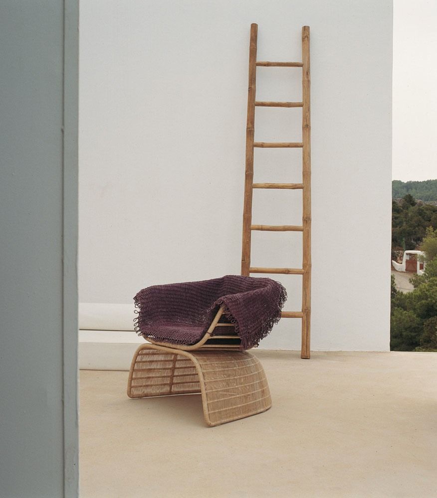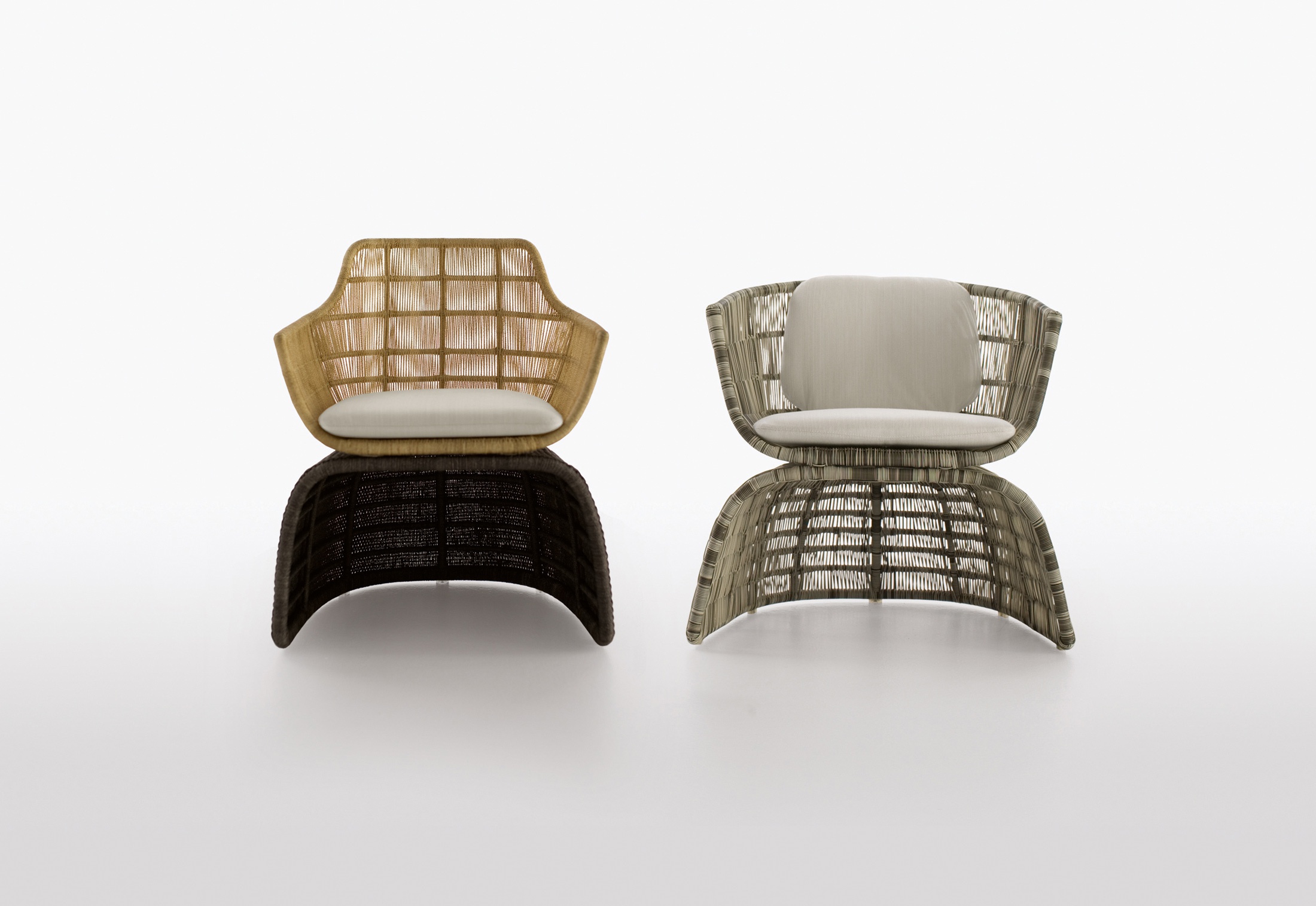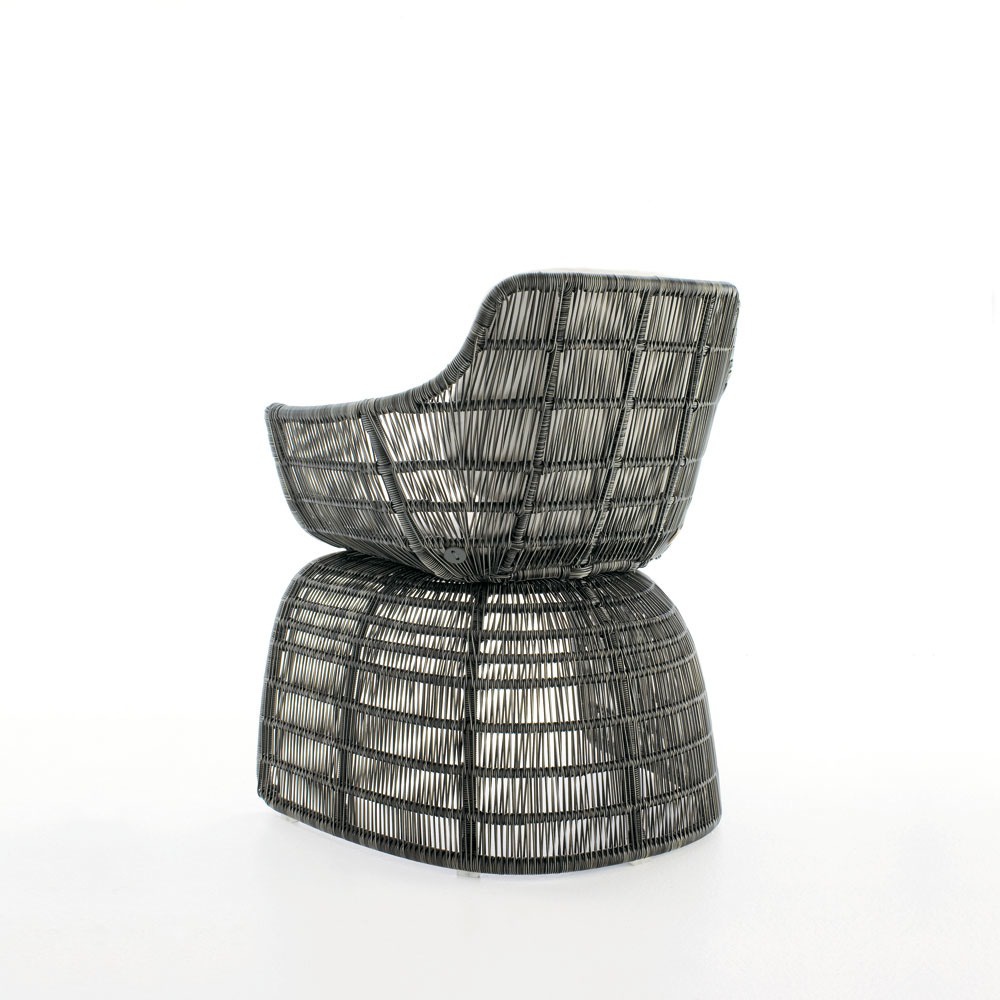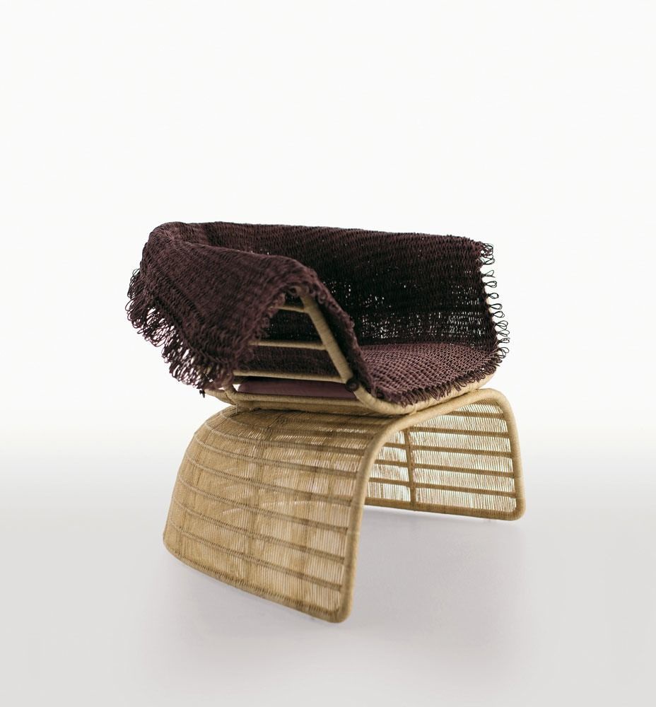 The Crinoline armchair from Italian manufacturer B&B Italia. Braided model made of polyethylene yarns. The seat is complemented with a soft pillow. Colours in stock. Designed for garden or terrace.