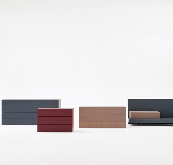 The Door chest from the Italian manufacturer B&B Italia. The frame is made of MDF. Model with drawers. A great choice for the bedroom in modern style. Colors: red, brown, grey.