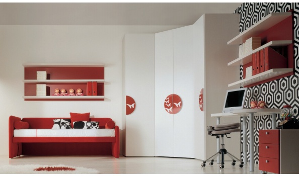 Headsets for children from the Italian manufacturer, Di Liddo & Perego. Set includes a bed, Desk, chair on castors, Cabinet and shelf. The furniture is made of solid wood. The chair is transformed. Colors - maroon, white and black.
