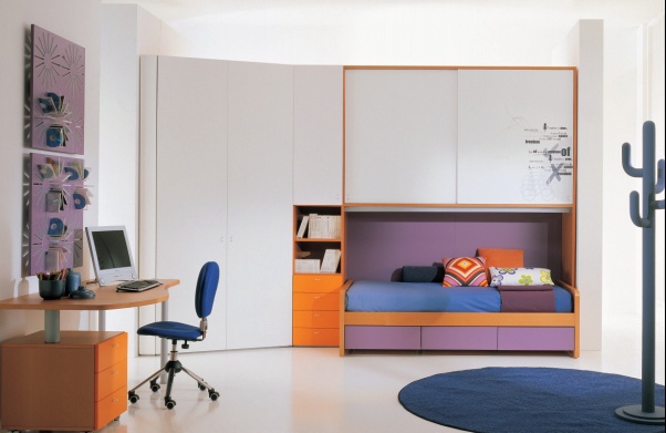 Headsets for children from the Italian manufacturer, Di Liddo & Perego. Set includes a bed, Desk, chair with wheels and modular system. The furniture is made of solid wood. The bed is complemented with roomy drawers. Finishing varnish from the company portfolio. Colors - white, blue and orange.